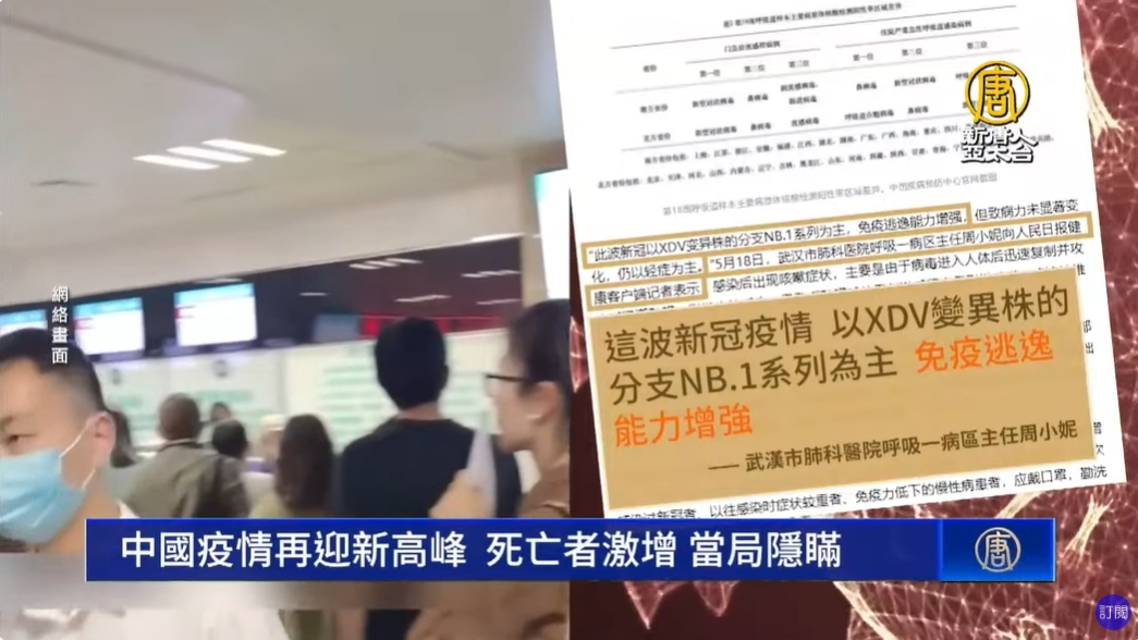 【新唐人亞太台 2025 年 05 月 21 日訊】中國多地近期出現新一波疫情高峰,不少患者出現發燒、喉嚨痛、眼睛紅腫等症狀,懷疑染上新變異病毒株。美國病毒學者林曉旭警告,疫情可能涉及多重病毒疊加感染,甚至不排除禽流感人傳人。民間則傳出大量猝死案例,殯儀館大排長龍,質疑中共再度隱瞞疫情。
