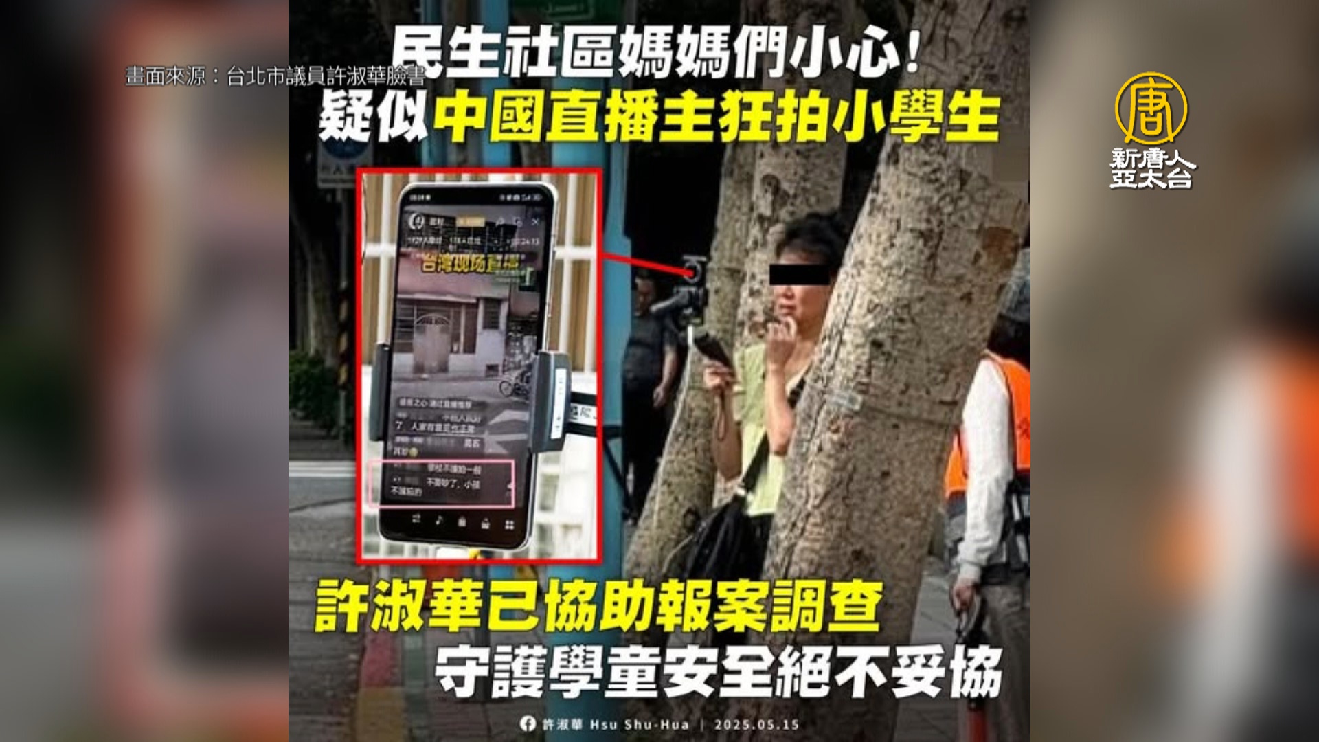 【新唐人亞太台 2025 年 05 月 27 日訊】再來關心,全台多地陸續出現疑有中國直播主對著學校直播情形,台北市社會局獲報2個案。北市警方昨晚表示,行為人分別為52歲劉姓陸配和25歲戴女,依妨害秘密罪嫌、違反兒少法送法辦,涉案陸配聲稱,只是直播台灣生活日常、風土民情。不過,最近全台灣多地校園,都傳出有類似情況,也有網友懷疑是否在蒐集各地區避難場所的細節,這是首波遭法辦的案件。