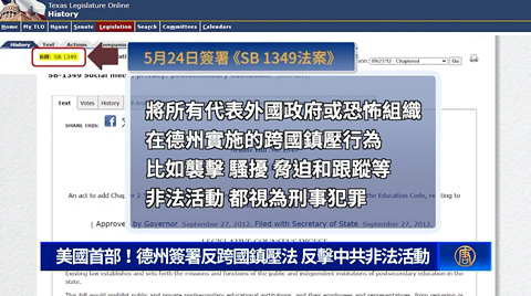 《SB 1349法案》,將所有代表外國政府或恐怖組織,在德州實施的跨國鎮壓行為,比如襲擊、騷擾、脅迫和跟蹤等非法活動,都視為刑事犯罪。