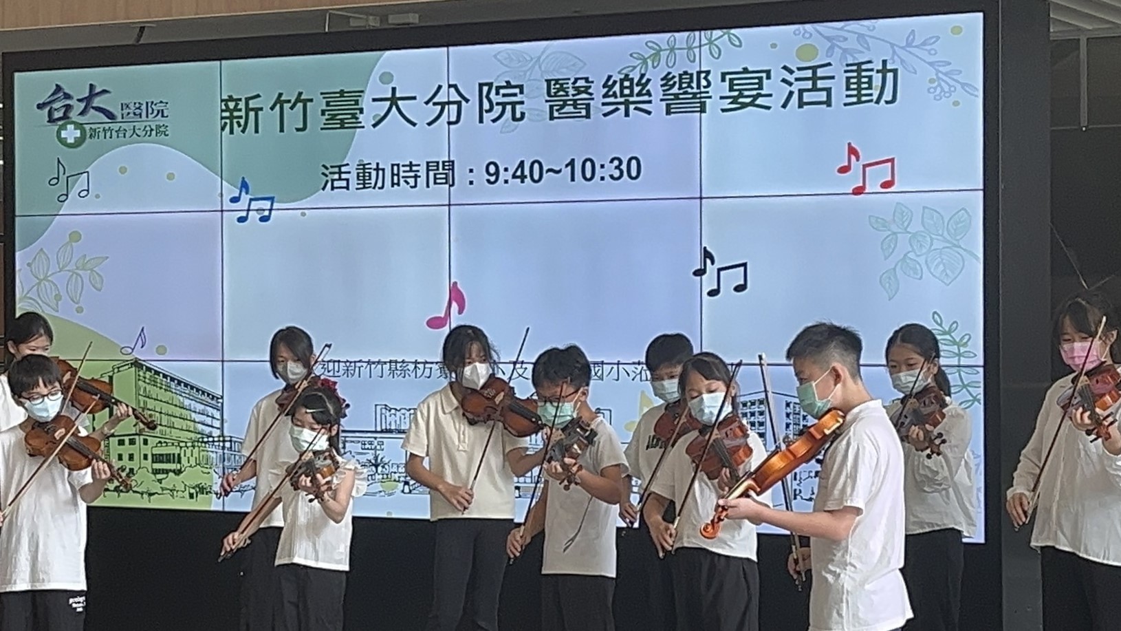 由新竹台大分院與新竹市企業經理協進會藝術與愛樂委員會共同發起的「音樂快閃活動」,5月27日溫暖登場。此次活動結合台灣光罩、奇鼎科技、詠康音樂藝術展演空間的共同支持,由竹詩愛樂帶領新竹縣枋寮及新湖國民小學孩童從偏鄉走入醫院,以音符傳情,用音樂傳遞感恩與希望。
