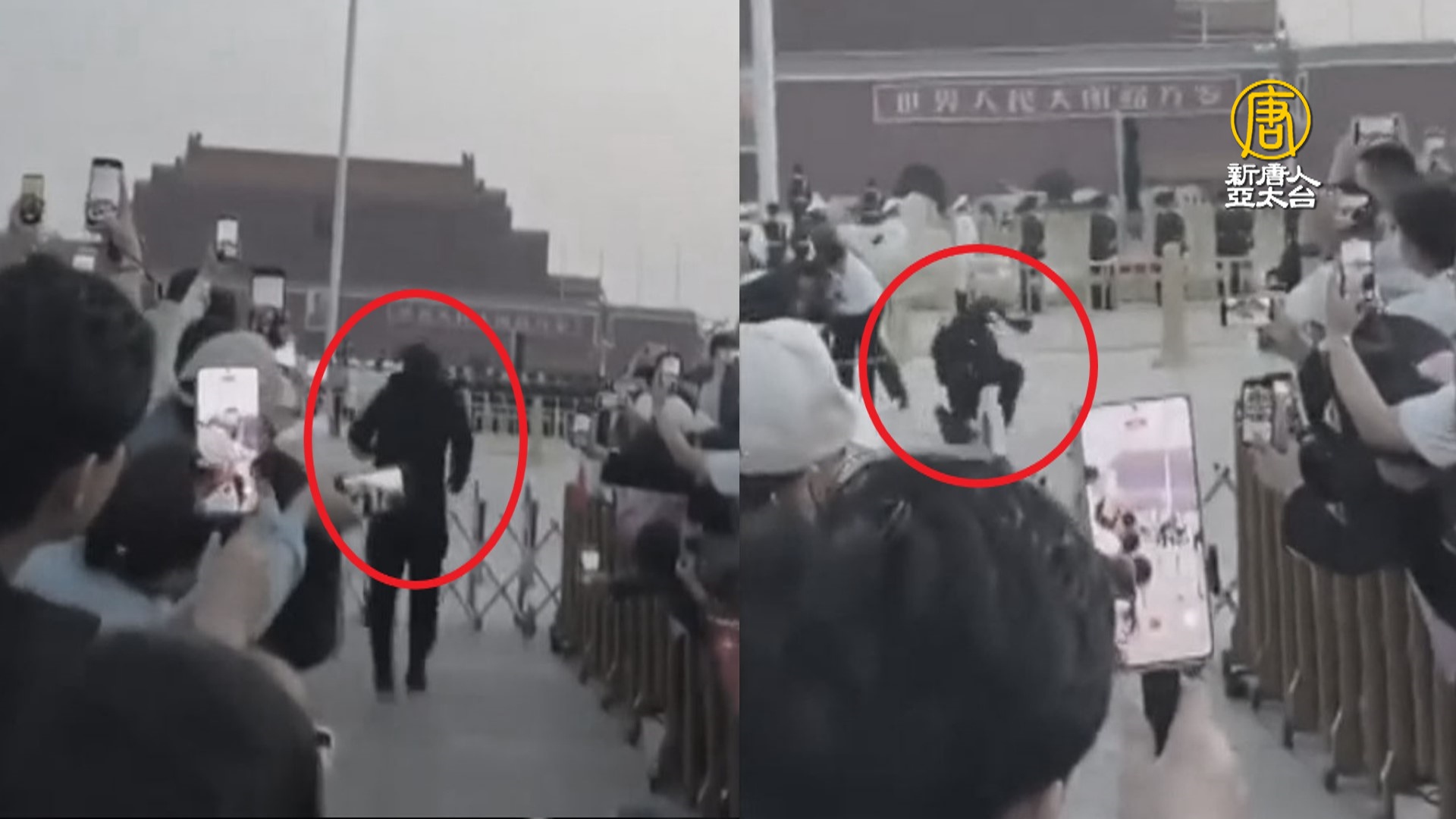 【新唐人亞太台 2025 年 06 月 03 日訊】歡迎回來,中國六四天安門血案今年滿36年,當局風聲鶴唳,6月2日凌晨,中國北京天安門廣場升旗儀式臨近尾聲時,一名黑衣年輕男子突然翻越欄杆,試圖衝向國旗旗杆,瞬間引發全場緊張氣氛。周邊警衛與便衣人員,將這名男子撲倒,總共8人抓捕一人,將這名男子押上一輛警車,其中一名警察在跳躍圍欄時,不慎摔倒的畫面,凸顯現場的緊張局勢,儘管警衛喊不要拍照,但整個過程被大批群眾圍觀,並用手機記錄下來。