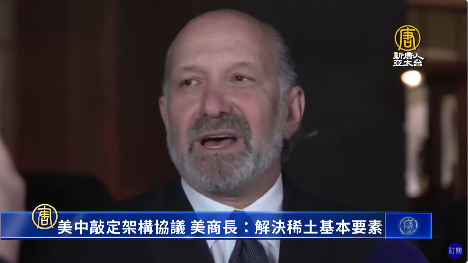 【新唐人亞太台 2025 年 06 月 11 日訊】美中代表團,在英國倫敦會談兩天後,在貿易架構達成共識。美國商務部長盧特尼克表示,中方以放寬關鍵稀土礦物的出口限制,作為交換,美方也將會鬆綁對中國的出口管制。