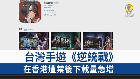 台灣手遊《逆統戰》 在香港遭禁後下載量急增