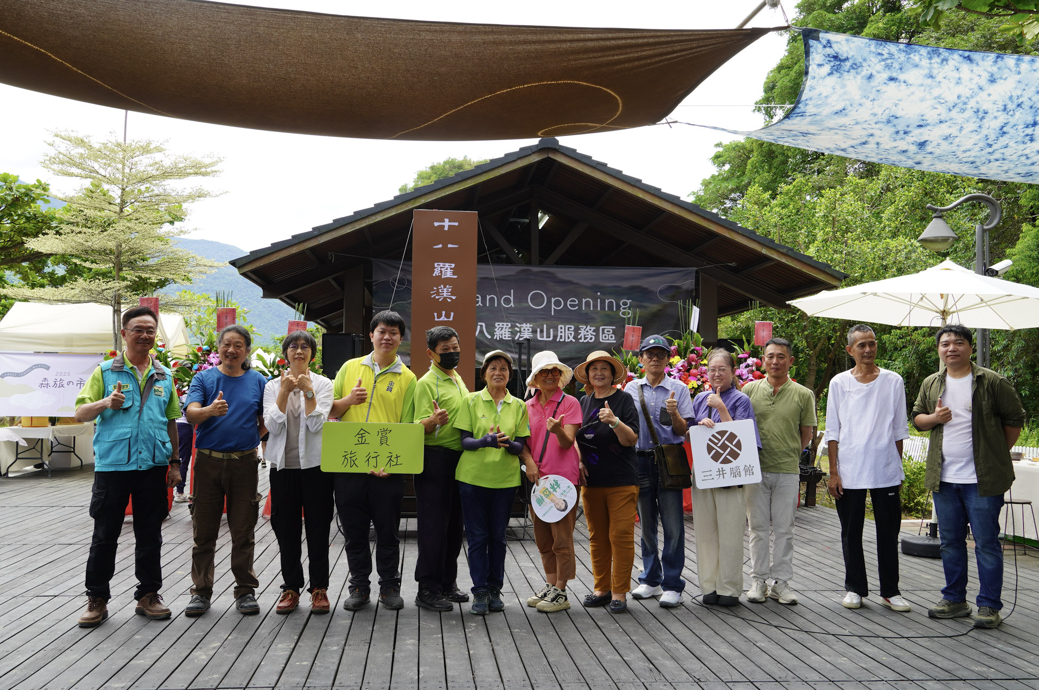 六龜十八羅漢山服務區在歷經場域優化與環境整理後,7月5日正式重新開幕揭牌