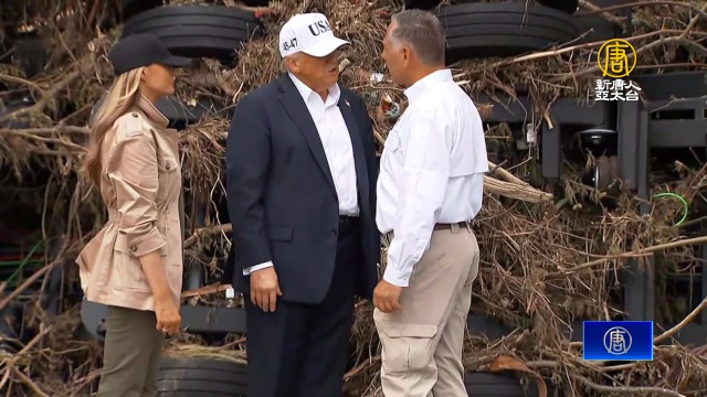 川普週五會見了第一線救援人員與洪災受害者家屬,並聽取州府官員簡報,了解最新災情與救援進展。