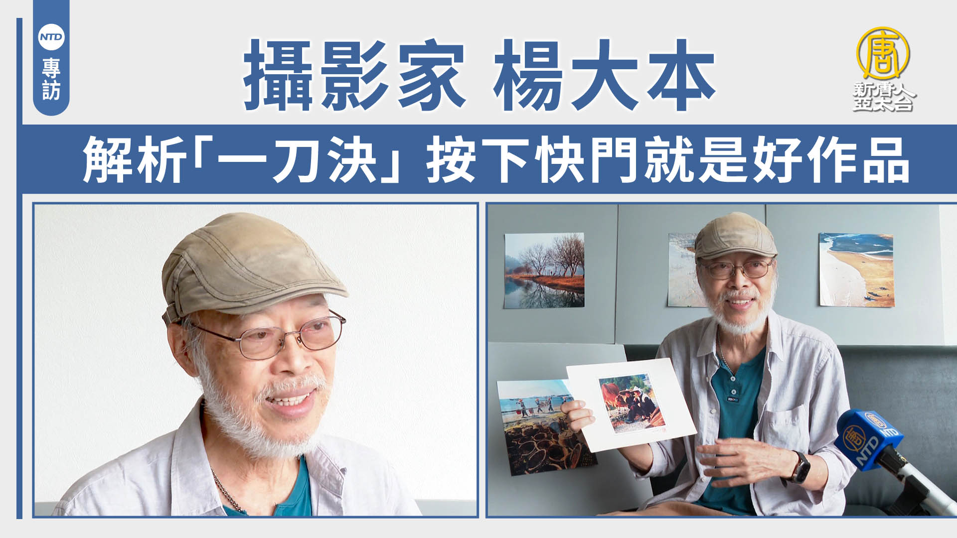 【新唐人亞太台 2025 年 07 月 15 日訊】新唐人國際攝影大賽,今年邁入第五屆,我們將持續為您挖掘,台灣攝影家的故事。帶您看到,台灣攝影名家楊大本,曾是台北市攝影學會理事長、台灣哈蘇攝影協會會長,拍攝風格以「一刀決」聞名。接下來,透過我們的專訪,帶您了解,什麼是「一刀決」。
