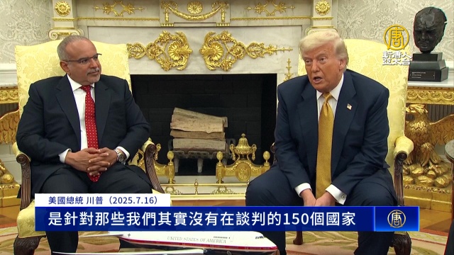 【新唐人亞太台 2025 年 07 月 17 日訊】美國總統川普陸續公布20多個貿易夥伴,將被課徵的新關稅稅率,其中沒有包括台灣。川普週三表示,即將宣布「一些不錯的協議」。
