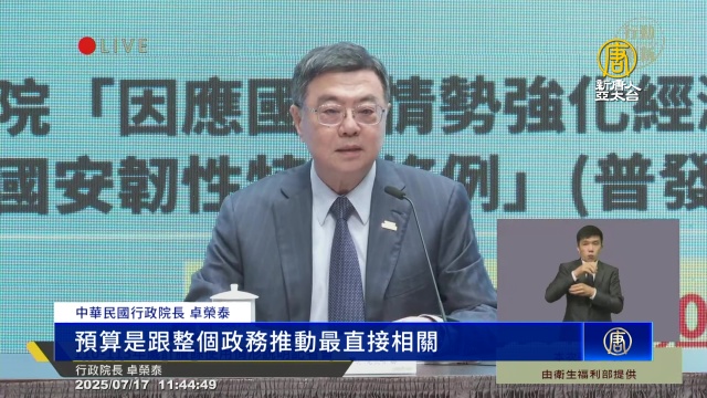 中華民國行政院長 卓榮泰:「這舉債一千億就是用來,發放現金、發放給國人,我正在考慮,這個在我們道德上過不過得去,國家財政上應不應該這麼做。我公開的希望,立法院能夠排定議程,讓行政院能夠去做說明,我們第一個說明國家財政的實際狀況,讓委員們能夠清楚,資料都可以補送給各位委員。第二個,我要跟立法委員們共同討論,什麼叫做合法合憲的審查預算。一個國家要正常運作,預算是跟整個政務推動最直接相關,但預算的形成,由行政院來編列,由立法院來審議,如果立法院不能用合法合憲精神來審查預算,國家紀律蕩然無存,財政紀律也蕩然無存。」