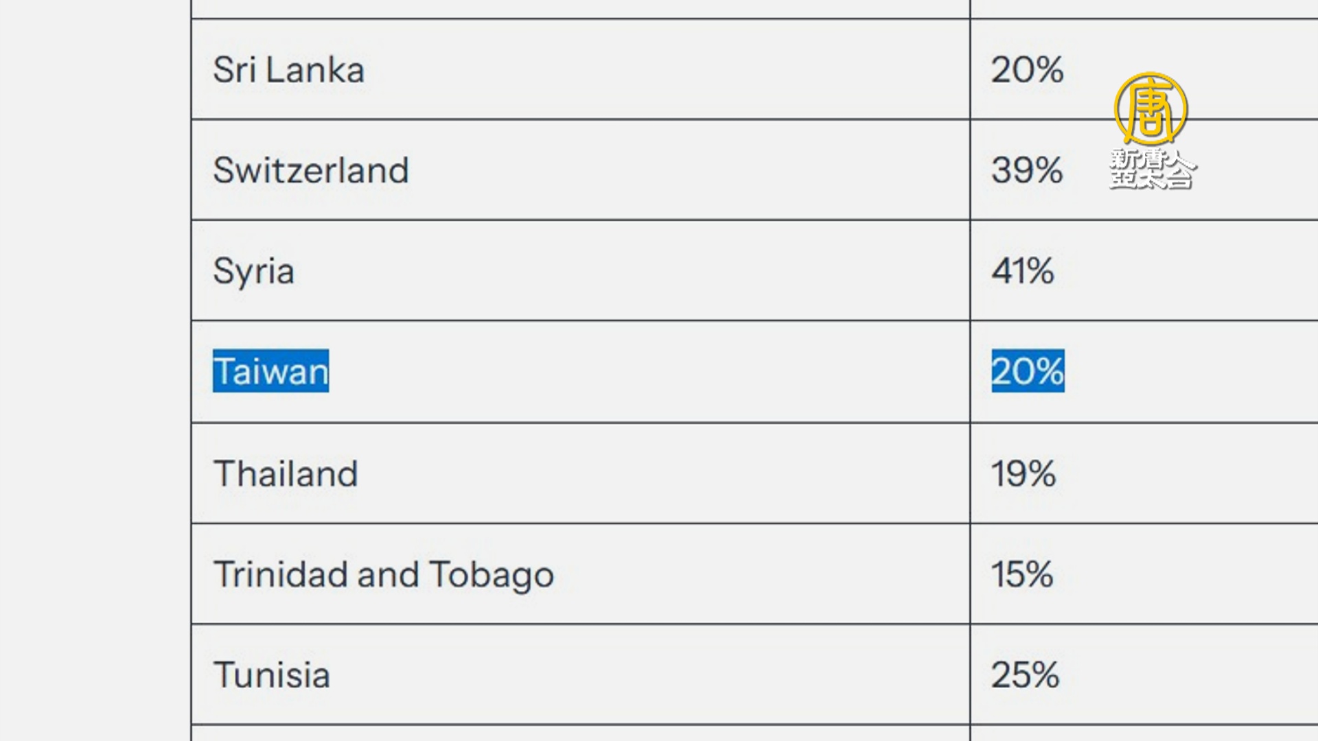 【新唐人亞太台 2025 年 08 月 01 日訊】來看到最新消息,美國白宮網站在台北時間今天早上公布,各國對等關稅稅率,台灣從4月份公布的32%,降為20%,仍高於日本、韓國的15%。
