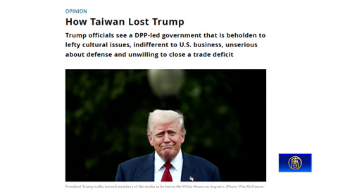 【新唐人亞太台 2025 年 08 月 06 日訊】再來看到,前美國國務院資深顧問惠頓投書,文章標題「台灣如何失去川普」,分析台灣在外交和貿易上所面臨的困境,源自一連串戰略錯誤所導致。惠頓認為,台灣方面不能理解並積極接觸,由川普所代表的美國「新右派」勢力,導致在新的國際政治秩序中處於不利地位。惠頓的觀點,這兩天引起台灣內部討論。