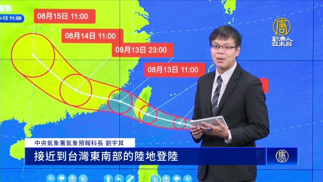 【新唐人亞太台 2025 年 08 月 12 日訊】楊柳颱風接近台灣,過去3小時以時速30公里加速前進,中央氣象署持續發布海上颱風警報,警戒範圍除了原先的台灣東半部海面及巴士海峽外,也增加台灣海峽南部,預計午後發布陸上颱風警報,初估首波警戒範圍為花蓮、台東、高雄及屏東。