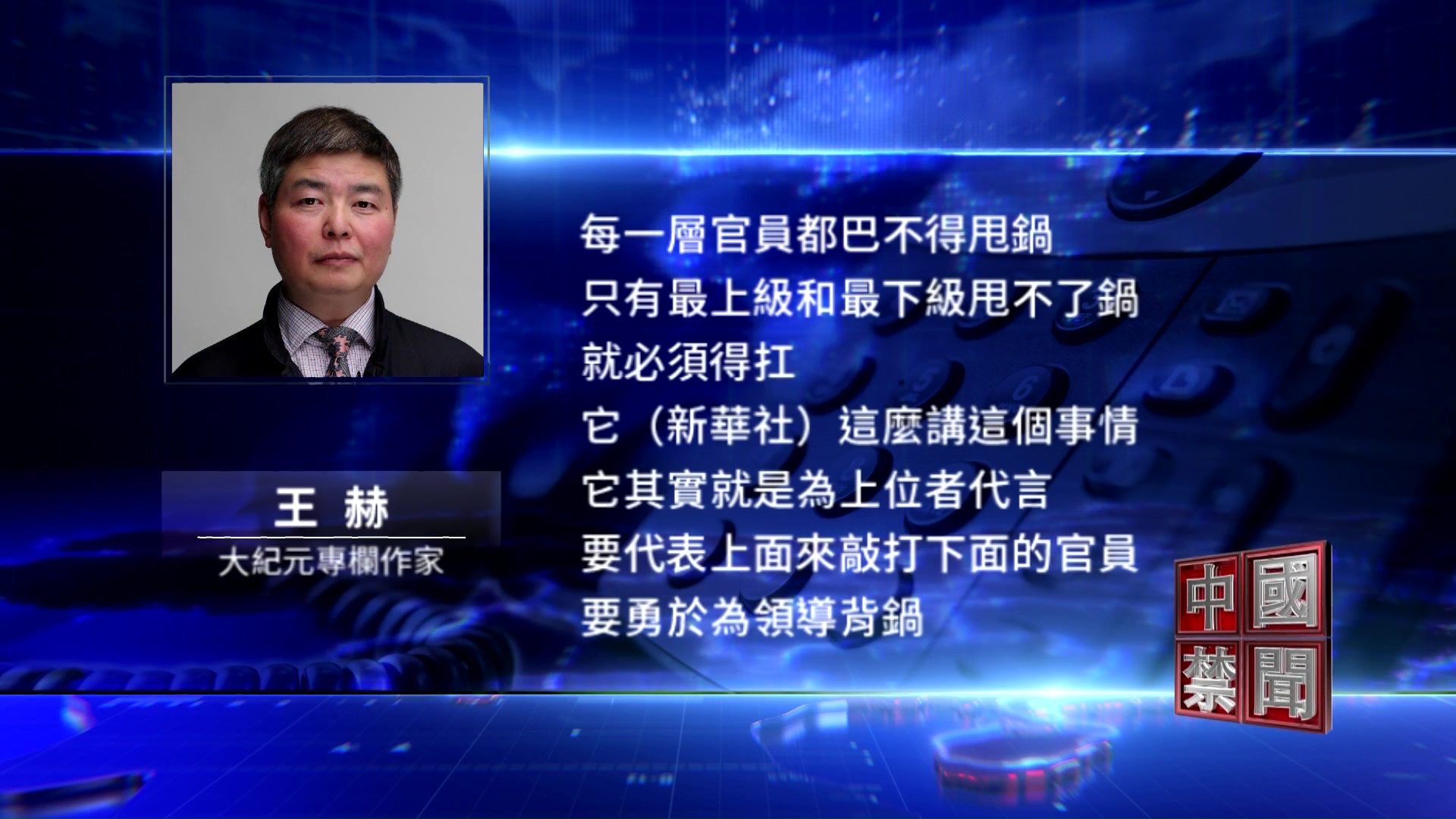 王赫:「每一層官員都巴不得甩鍋,只有最上級和最下級甩不了鍋,就必須得扛。它(新華社)這麼講這個事情,它其實就是為上位者代言,要代表上面來敲打下面的官員。要勇於為領導背鍋。」