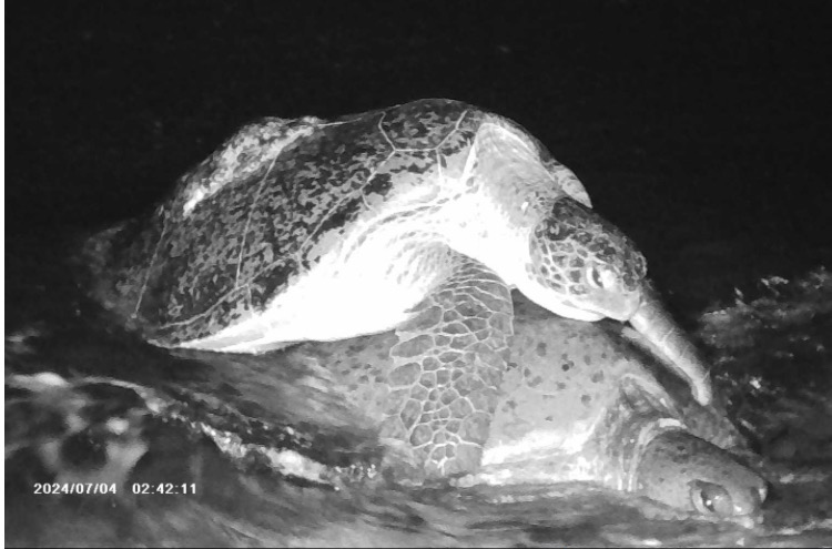 南沙海域常可見海龜交配行為(國立海洋生物博物館吳柏諭提供)