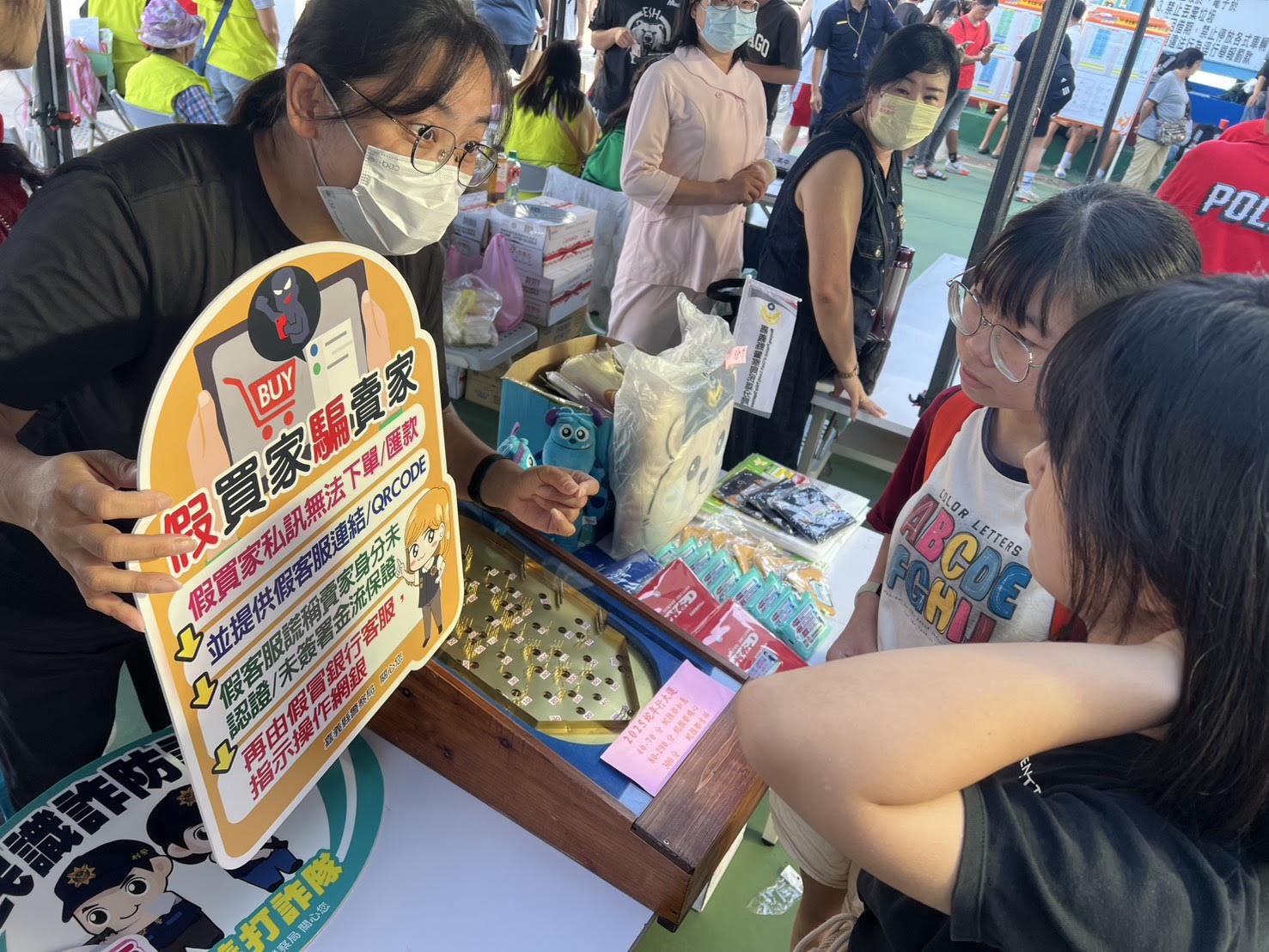 民雄分局說明,為提升民眾識詐防詐意識,警方特別結合大林「歐樂沃築夢城堡」、佐登妮絲城堡、嘉義酒廠等觀光工廠,以及「民雄鄉水FUN夏」、「民雄國中青春3對3籃球比賽」等活動,設置宣導攤位、發放反詐宣導品,介紹近期詐騙集團常見的詐騙手法,提醒民眾,務必提高警覺及防詐三步驟「冷靜、查證、報警」,避免上當受騙。
