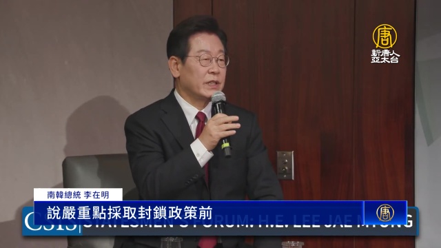 【新唐人亞太台 2025 年 08 月 26 日訊】韓國總統李在明美東時間25日,在美國智庫CSIS發表演講,承諾增加軍費,他在回答提問時表示,在美國封鎖中共之前,韓國採取安美經中是事實,但在美國明確牽制中共的情況下,韓國已經無法採取過去的態度,韓國現在已無法在行動和判斷上違背美國的基本政策。