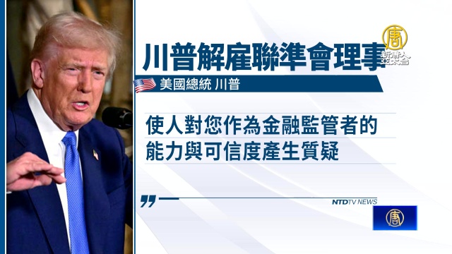 【新唐人亞太台 2025 年 08 月 26 日訊】再來看到,金融圈震撼彈,美國總統川普週一宣布,解僱聯準會理事庫克。這是聯準會史上第一次,有總統開除現任理事。