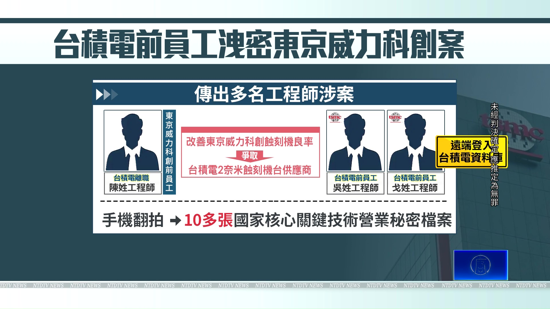 新唐人日本記者 許婷:「台積電兩奈米洩密案,震驚業界,其中一名洩密者,來自東京威力科創公司,他是台積電的前員工,日本輿論擔心洩密案影響日本半導體形象。對此,東京威力科創除了解雇洩密者,公司高層親自赴台灣善後,全力配合台灣調查。」