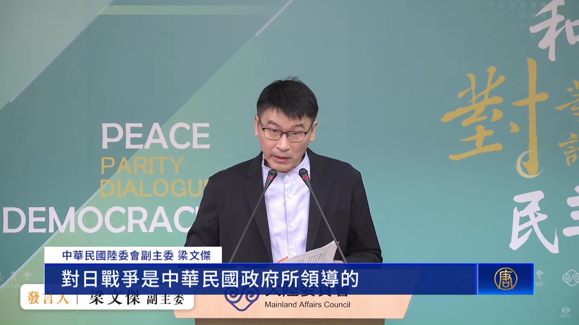 中華民國陸委會副主委 梁文傑:「對日戰爭是中華民國政府所領導的,那真正有貢獻的只有中華民國政府的軍隊;中國共產黨在對日戰爭之中,是毫無貢獻可言。」
