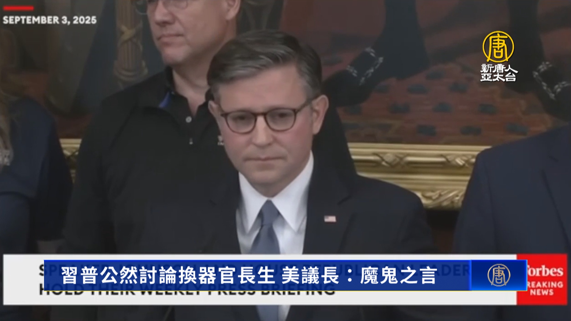 【新唐人亞太台 2025 年 09 月 04 日訊】好,普丁與習近平公然討論換器官長生一事,引爆國際輿論,美國國會眾議院議長強生在回答本台提問時,明確表示,習近平跟普丁說法是邪惡的言論。強生承諾,要把「反對活摘器官」列為國會立法的優先事項。請看我們前線記者的報導。