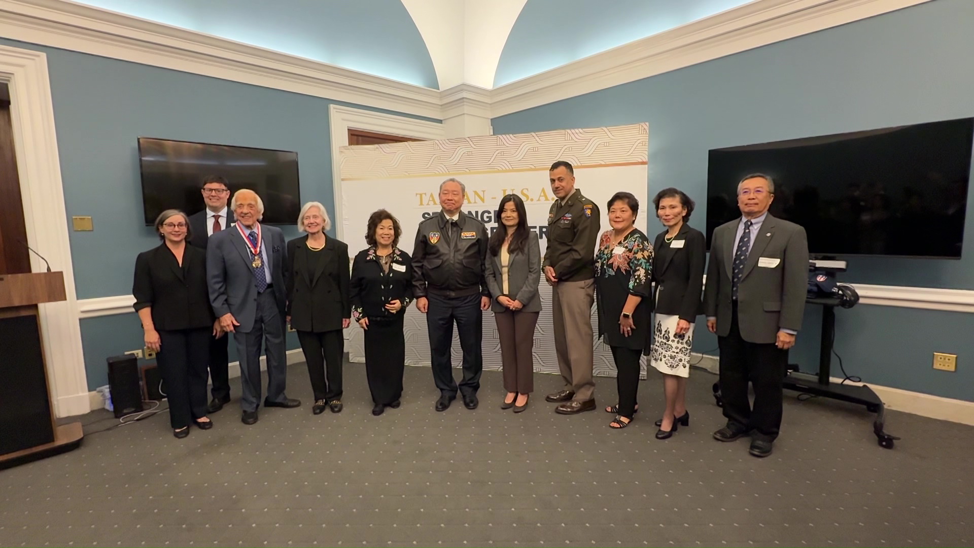 另外,今年已經高齡97歲二戰老兵的游賀(Dave Yoho),也蒞臨授勳。同樣獲頒這份殊榮的,還有曾經擔任美軍顧問團,在金門遭到中共砲擊而殉職的孟登道(Alfred Medendorp)中校,生前服役於密西根州國民兵的他,這次則是密西根國民兵的現役指揮官代表出席。