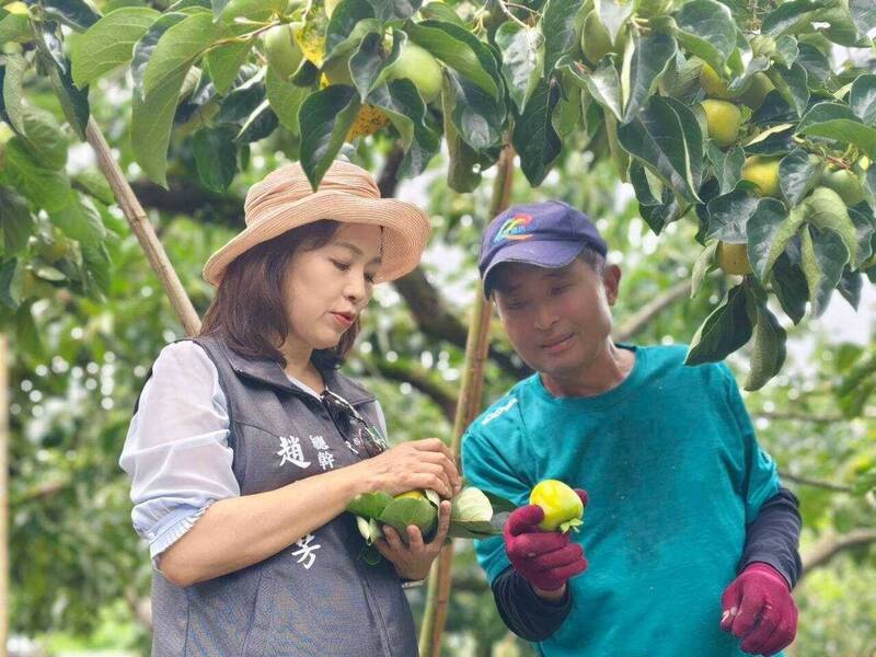 番路鄉農會總幹事趙幸芳,瞭解柿子生產情形。(番路鄉農會提供)
