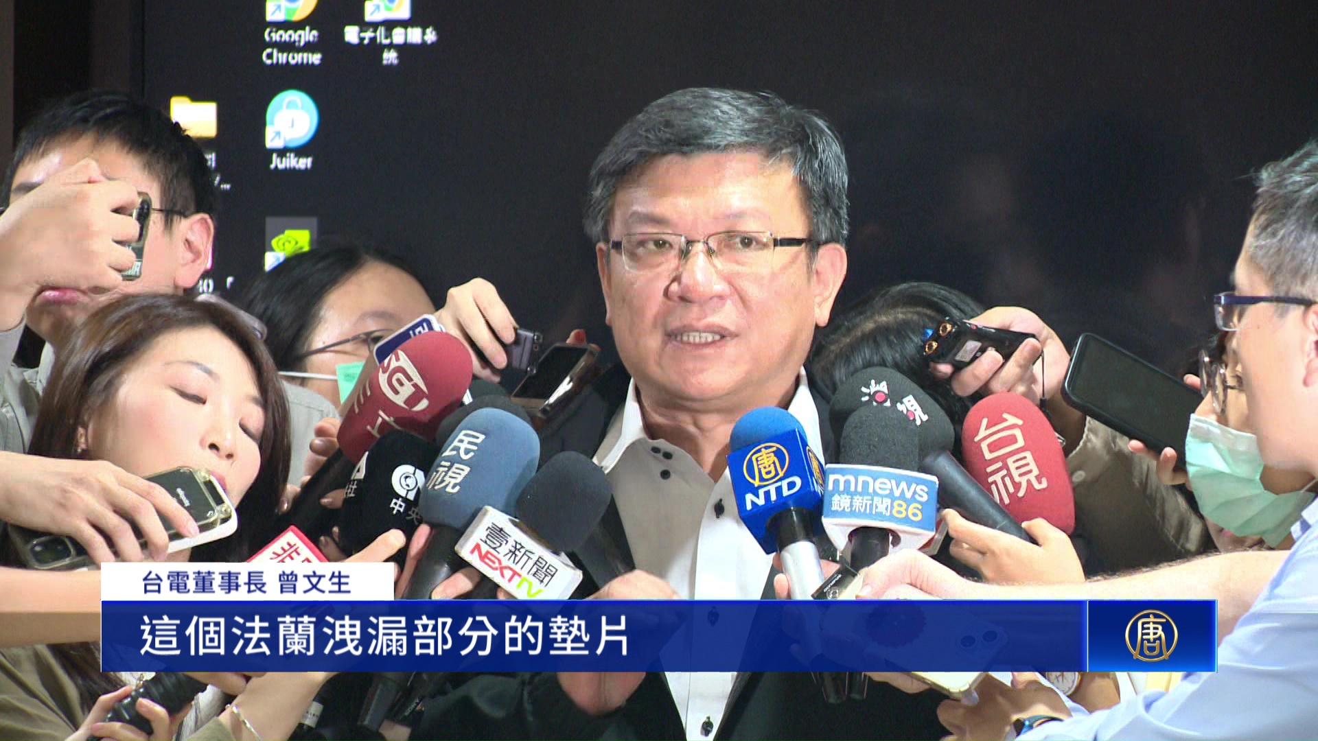 台電董事長 曾文生:「我想大家在關心就是說,這一些來源國的廠商,有沒有洗產地的問題?台電公司會跟奇異一起,來調查這一些細節的部分。(至少承包商這一塊是沒有明確有中國貨的現象?)我們手上現在看到的資料,是沒有這樣子的事情。這個法蘭洩漏部分的墊片。我們會再做更深入的調查。」