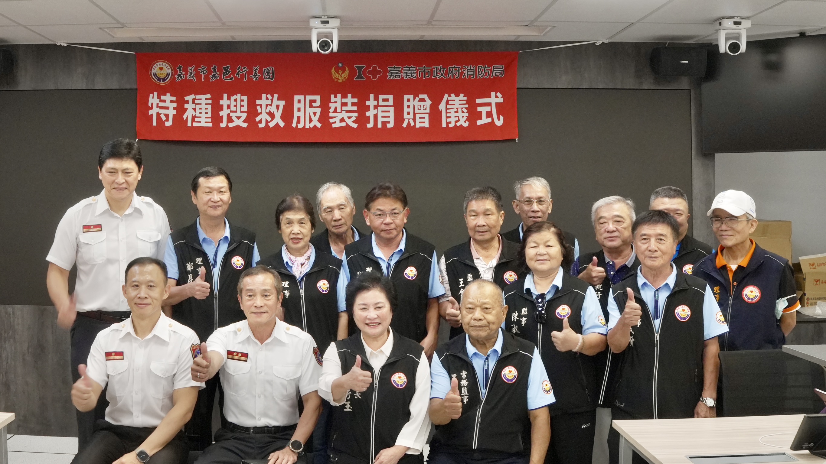 嘉邑行善團捐贈嘉義市消防局特種搜救服,提升嘉義市消防局特種搜救隊及義勇特種搜救分隊的救災防護與救援效能。(嘉義市消防局提供)