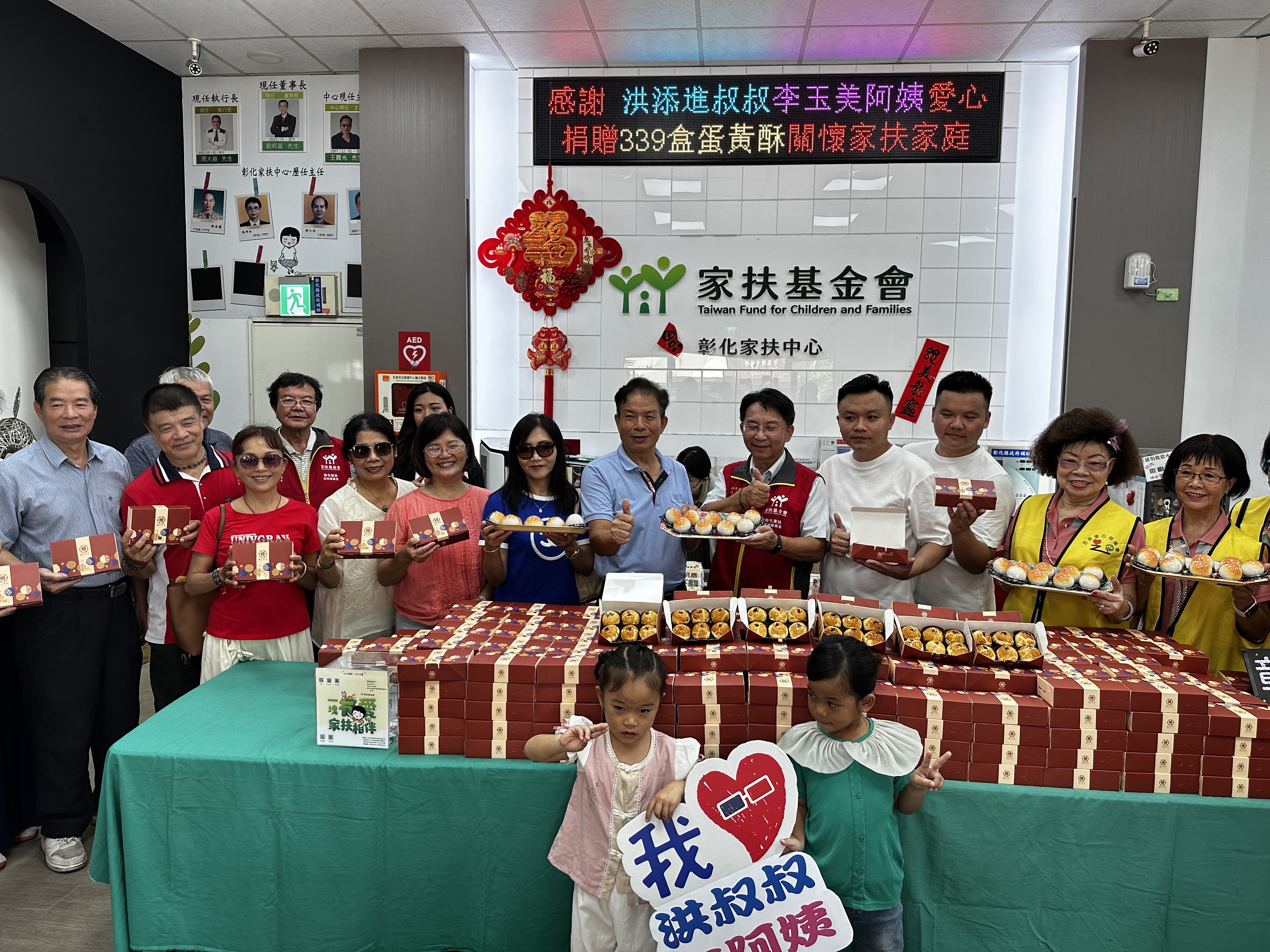 彰化家扶主任王震光指出,助貧童,看見改變的未來!非常感謝洪董事長伉儷的善心,339盒蛋黃酥將分享給與縣內12鄉鎮受助家庭。這些溫暖的關懷,將成為孩子們成長過程中重要的力量,鼓勵他們積極面對生活中的挑戰,讓他們度過一個溫馨愉快的中秋佳節。