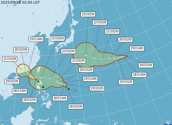【新唐人亞太台 2025 年 09 月 18 日訊】歡迎您收看9月18日的早安新唐人,我是唐潔安,先來帶您關心天氣。氣象署透露米塔颱風、樺加沙颱風有機會在今天(18日)先後生成,要特別注意的是「樺加沙」如果在今天下午生成,可能會朝台灣方向前進,最快星期天晚上發佈海警。樺加沙目前模擬路徑分歧,甚至有穿越台灣的模擬路徑出現。