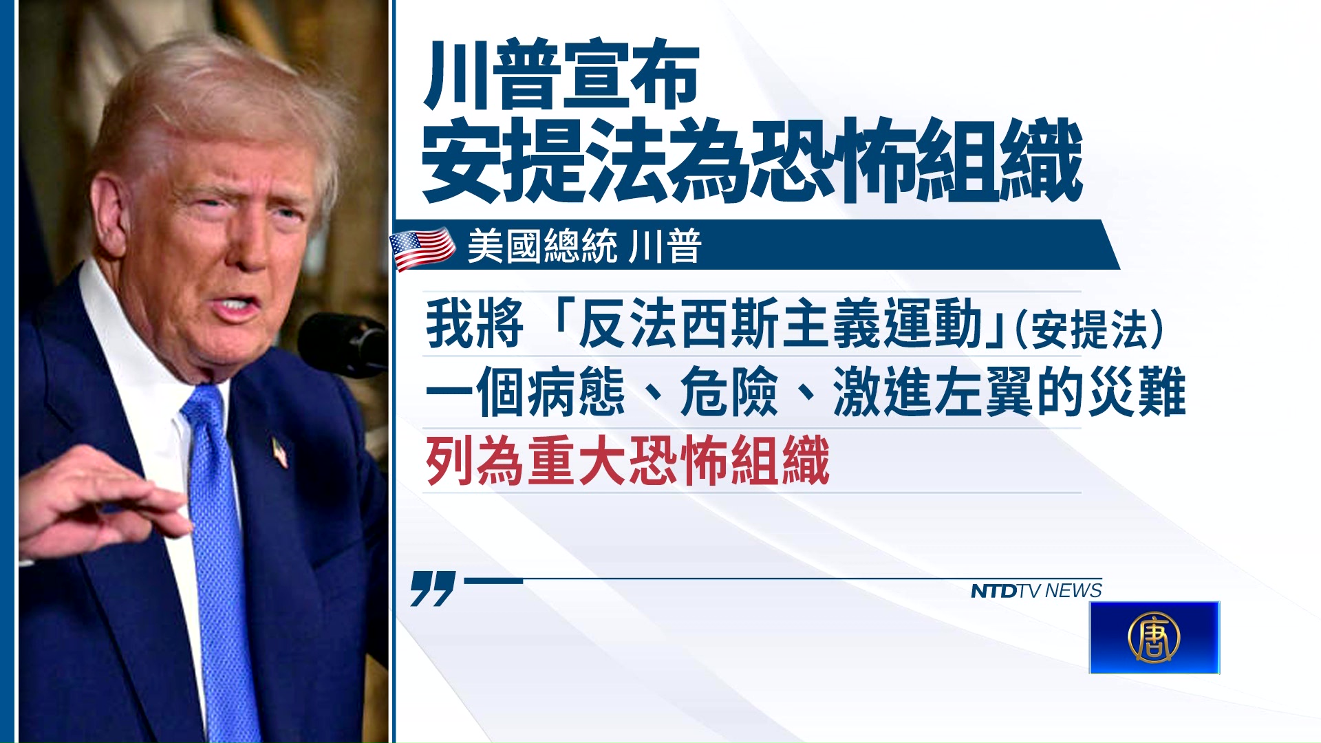 【新唐人亞太台 2025 年 09 月 18 日訊】美國青年保守派領袖柯克遇害後,美國總統川普週三晚間宣布,將極左組織「安提法」正式列為「主要恐怖組織」,並強調要調查資助者。