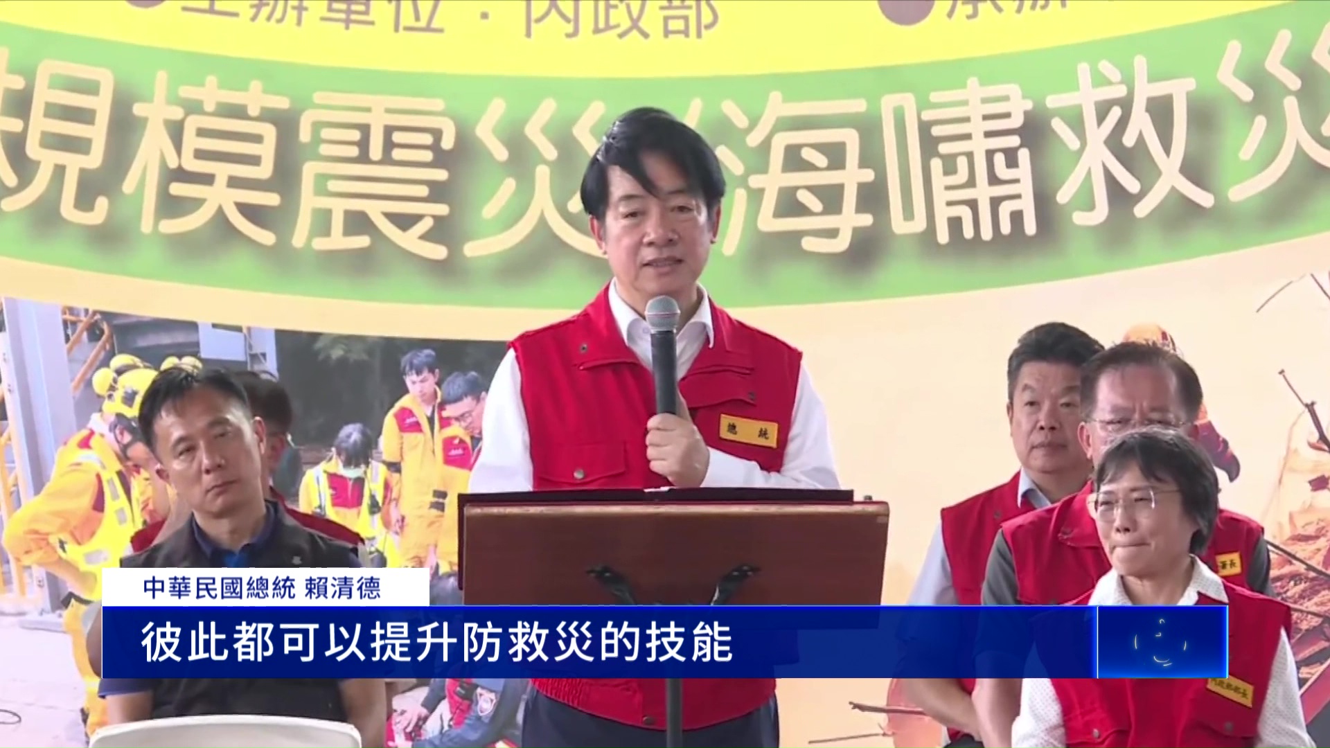 賴總統視察地震防災日演練 美日18國觀摩團出席