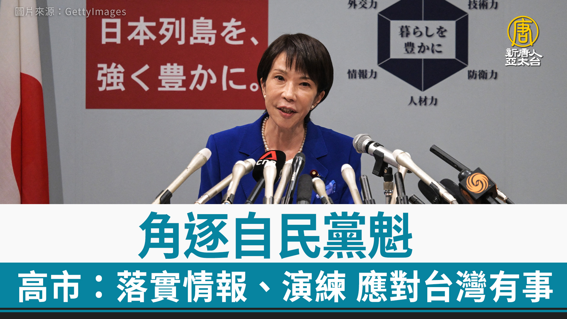 【新唐人亞太台 2025 年 09 月 19 日訊】日本首相大位,五強競爭。前經濟安保大臣高市早苗,週四(18日)正式表態參選自民黨總裁,今天記者會發表政策藍圖。她主張擴大投資重振日本經濟,設立新機構嚴審海外投資,並強化國防與外交,落實日本台灣之間的情報交換與演練,強調「台灣有事就是日本有事」。高市被視為是,最能延續「安倍路線」的參選人。