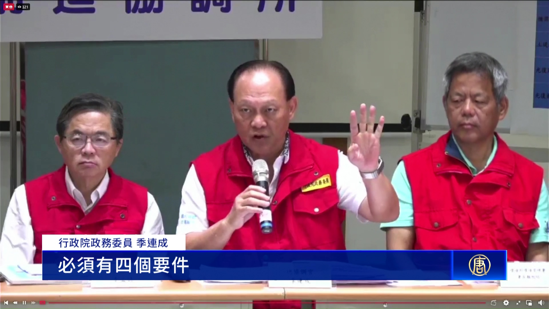 行政院政務委員 季連成:「撤離計畫我們在今天下午,會請縣府完成地方的撤離計畫,中央的部分,由內政部部長在中央會召開一個會議,會議決定之後,我們會把相關的要件提上去以後,中央就會考量到將紅色警戒向下降低。」