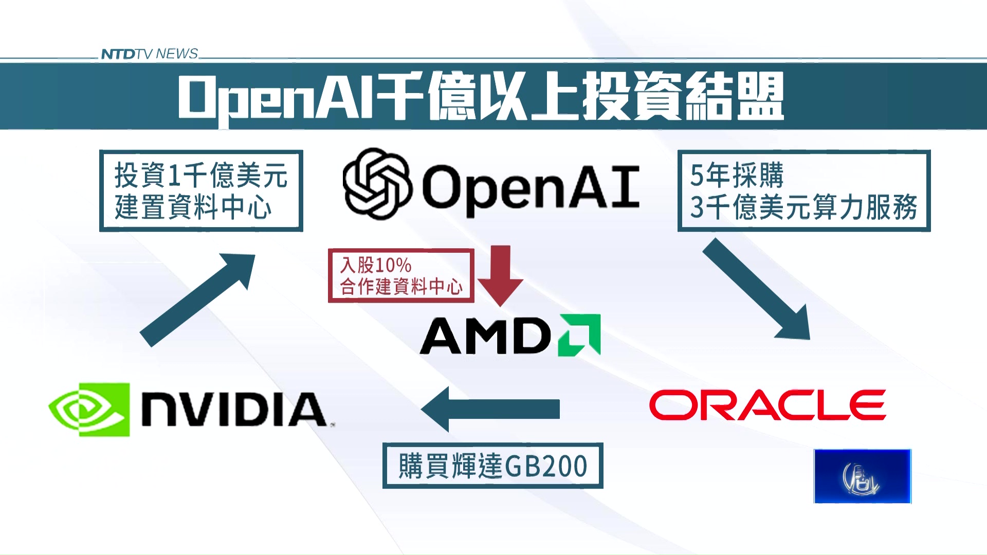 【新唐人亞太台 2025 年 10 月 07 日訊】美國晶片大廠超微(AMD)6日官網宣布,與ChatGPT開發商OpenAI,達成AI晶片供應協議,同時OpenAI將入股AMD,持股10%,共同建設AI資料中心。先前輝達才宣布投資OpenAI 千億美元,此次結盟也引發業界關注。