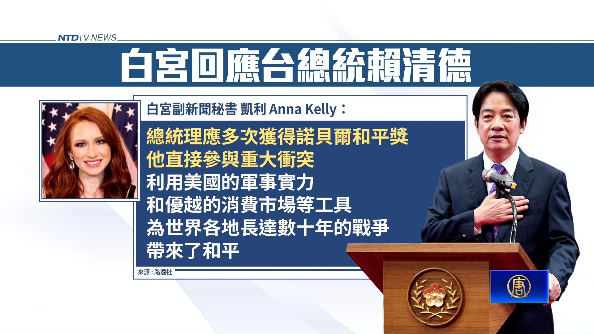 白宮回應賴總統提議:川普值得多次獲諾獎