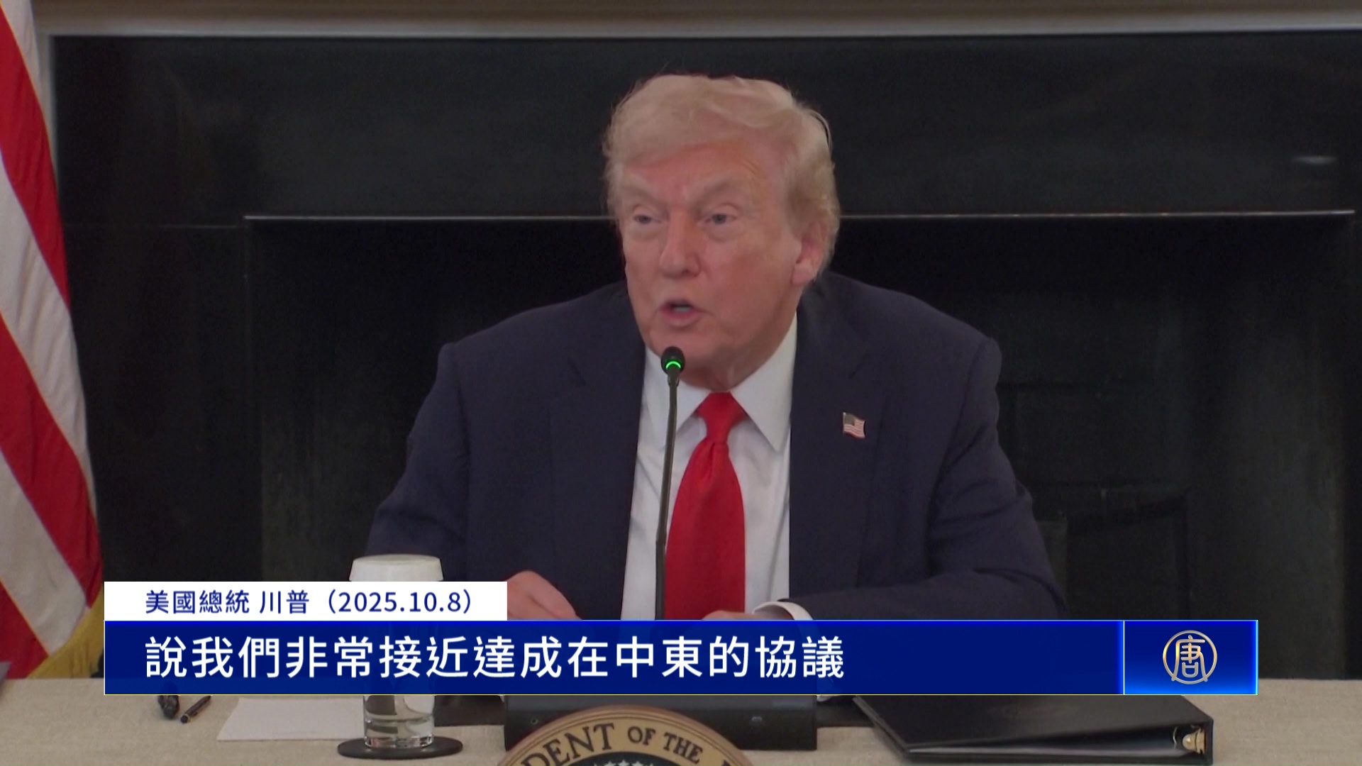 美國總統 川普(2025.10.8):「國務卿剛剛給我一張紙條,說我們非常接近達成在中東的協議。」
