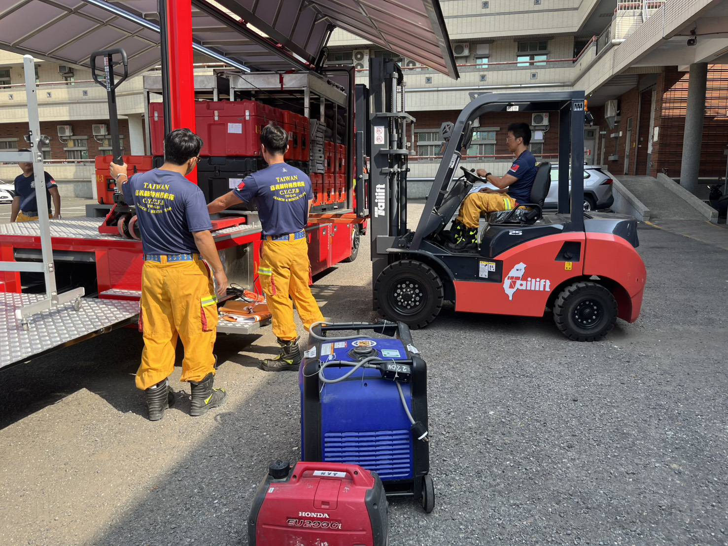 嘉義縣特搜隊整備相關器材、裝備,奔赴花蓮馬太鞍溪災區投入搜救行列。(嘉義縣消防局提供)