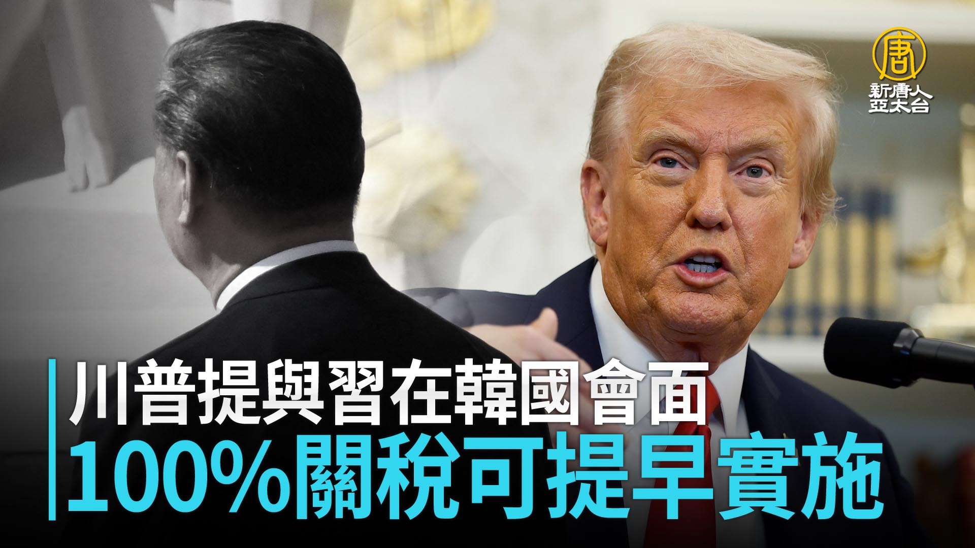 【新唐人亞太台 2025 年 10 月 18 日訊】美國總統川普17日再次表示,他將跟中共黨魁習近平在韓國的亞太經合會議期間會面,並說由於關稅的關係,美國現在處於非常有利的地位,只要他願意,100%的對中關稅甚至可以提前實施。