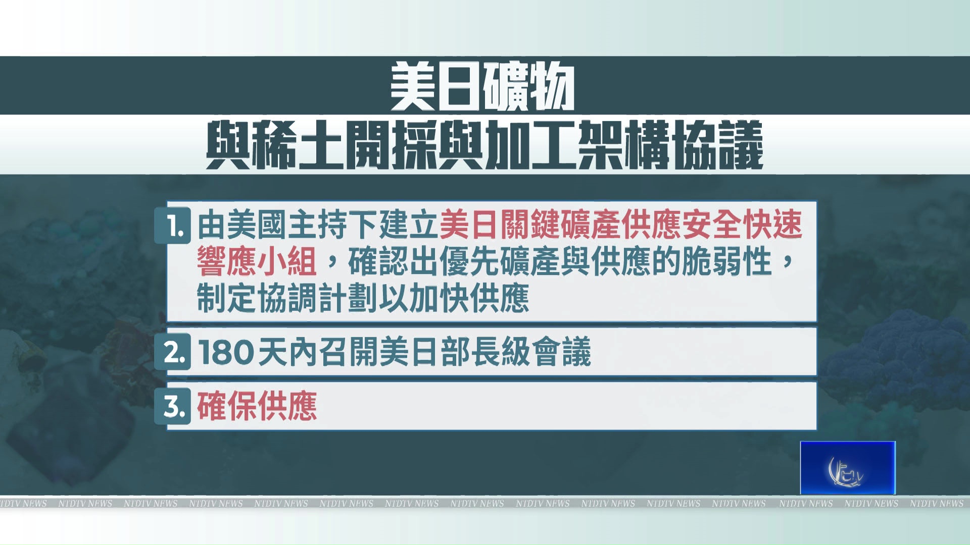 【新唐人亞太台 2025 年 10 月 28 日訊】好,美日領袖峰會,今天焦點之一就是,白宮發布了美日關鍵礦物與稀土供應鏈開採協議,還將酌情與第三方國際夥伴合作。帶您快速瀏覽協議內容。