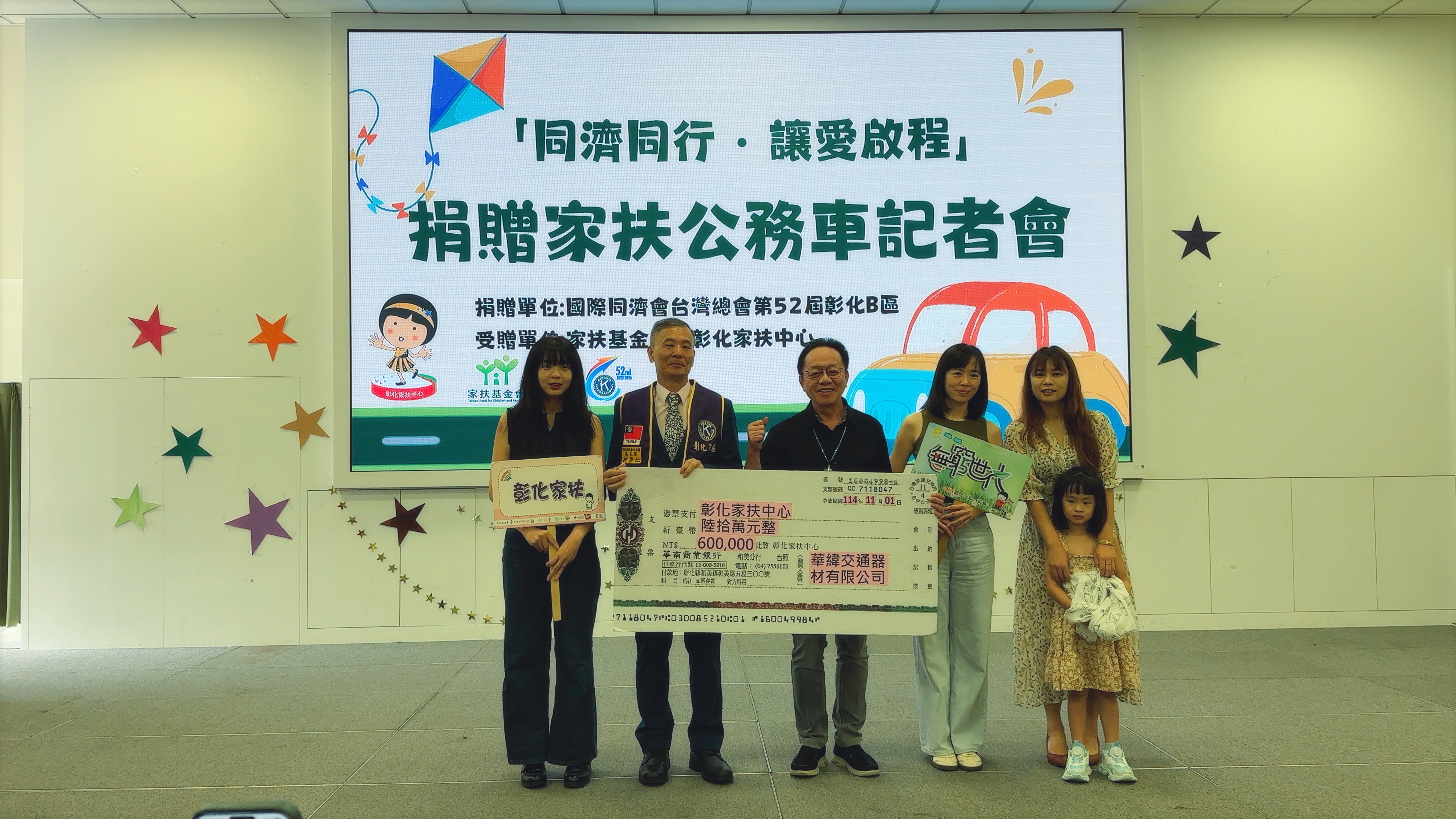 【新唐人亞太台 2025 年 11 月 01 日訊】秉持「扶幼助學、傳愛社會」的精神,彰化家扶員林區扶幼委員會二副主委柯崇仁先生,同時身兼國際同濟會台灣總會彰化B區第52屆主席,於今天(1日)號召國際同濟會台灣總會彰化B區,共同捐贈一輛嶄新的七人座公務車予彰化家扶中心。這輛公務車將成為社工訪視與物資運送的得力助手,亦可用於接送兒少參與活動,提升家扶服務的機動性與安全性,讓關懷行動更即時、更深入。