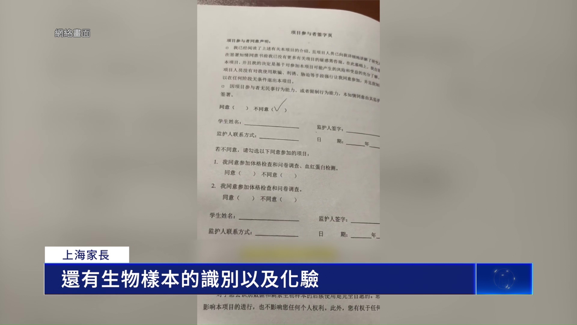 上海家長:「它這個項目也不是什麼體檢,要簽很多同意書。」
