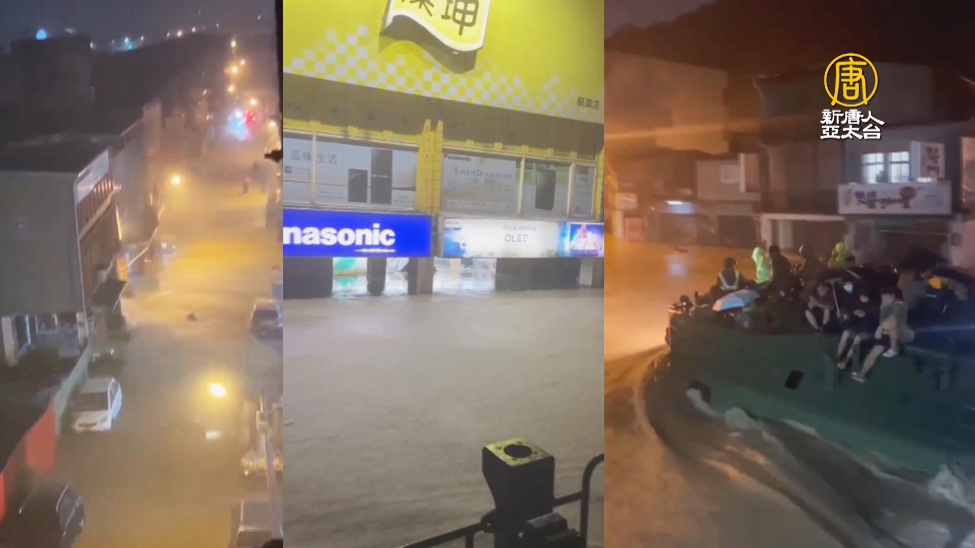 【新唐人亞太台 2025 年 11 月 12 日訊】早安新唐人先來關心,鳳凰颱風暴風圈已經進入台灣陸地,颱風外圍環流加上東北季風產生共伴效應,全台灣截至晚間統計,一般災情累計158件,受傷人數33人。其中在宜蘭蘇澳淹水更是高達一層樓,宜蘭雨勢昨天一整天沒停過,蘇澳緊急撤離五百多人,市中心入夜之後淹水一層樓高,有變電箱疑因積水短路爆炸,現場火光閃爍、伴隨巨大聲響,隨即整片街區陷入一片漆黑。因為路面積水太深,無法步行,有居民上樓避難,國軍出動AAV7兩棲突擊車前往救援,颱風已為宜蘭帶來上千毫米的致災性豪雨,有49處地區出現積淹水,轄內土石流紅色警戒共22條。