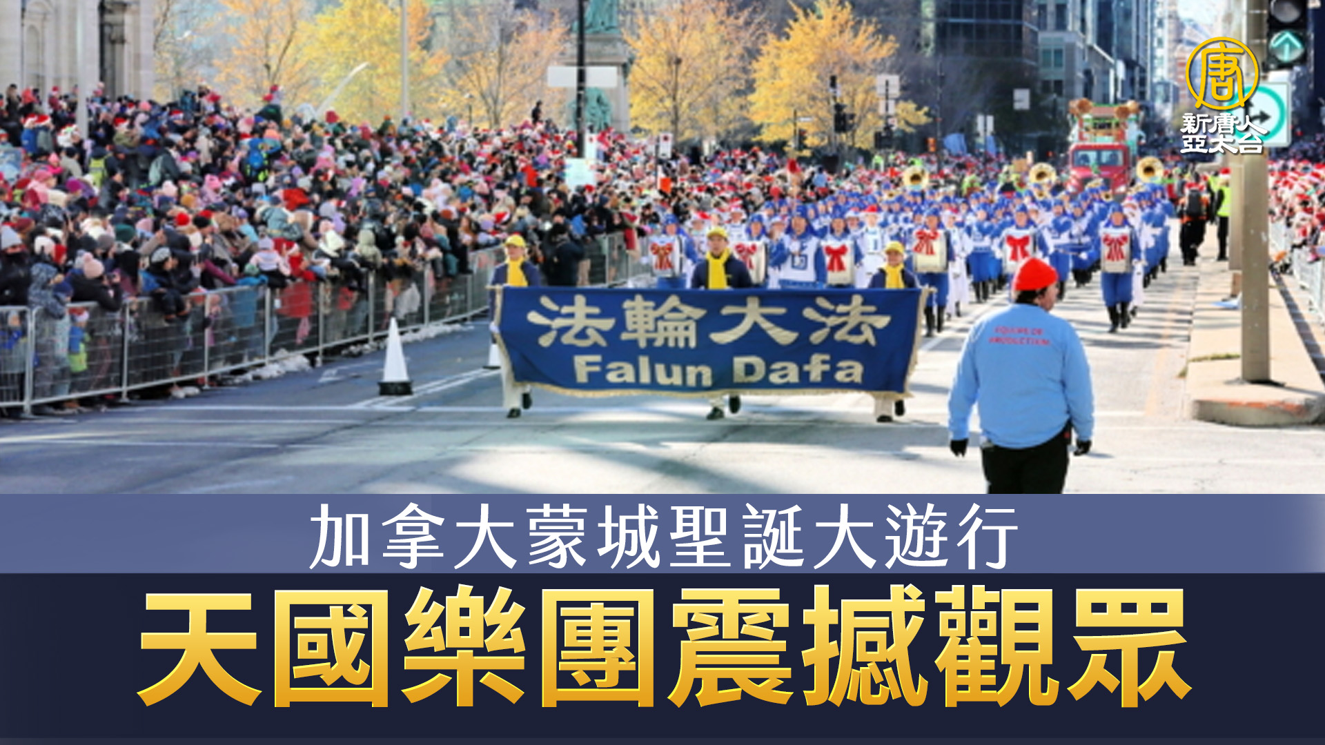 【新唐人亞太台 2025 年 11 月 25 日訊】加拿大蒙特婁,在過去的週六,舉行了聖誕大遊行,吸引二、三十萬民眾駐足觀賞,其中,法輪大法「天國樂團」,再度以陣容最大的壯觀隊伍亮相,震撼當地民眾。