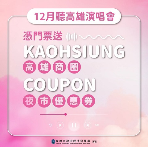 高雄市政府配合大型音樂活動,推出面額50元的商圈夜市優惠券。(高雄市政府經發局提供)