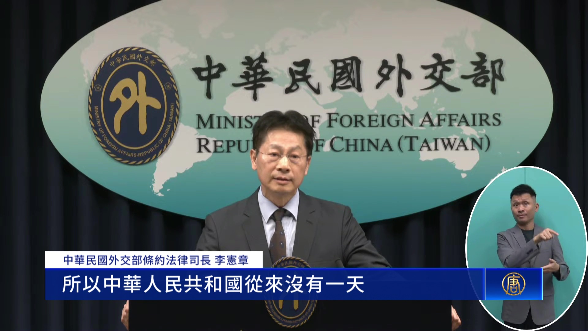 中華民國外交部條約法律司長 李憲章:「中華民國台灣政府,在這個議題上的立場是非常持續而且一致的,就是我們中華民國台灣跟中華人民共和國是互不隸屬的,這個是一個政治現狀,也是一個客觀的事實。二戰之後,舊金山合約已經取代了,波茨坦公告跟開羅宣言這樣的政治聲明,所以中華人民共和國從來沒有一天,管理或者統治過台灣,這是一個歷史事實。那我們台灣從1980年代開始力行民主化跟自由化的歷程,經過了1996年的總統第一次大選,還有之後的三次政黨輪替,不僅讓我們中華民國鞏固民主體制,從此成為有效統治,並且能夠代表我們台灣2300萬人的一個,唯一的合法政府,所以也確立了我們中華民國,在跟中華人民共和國,一個對等的存在、互不隸屬的一個現狀。所以我必須在這強調,只有2300萬人民選出來的民選政府,才有資格在國際社會上,代表中華民國代表台灣。」