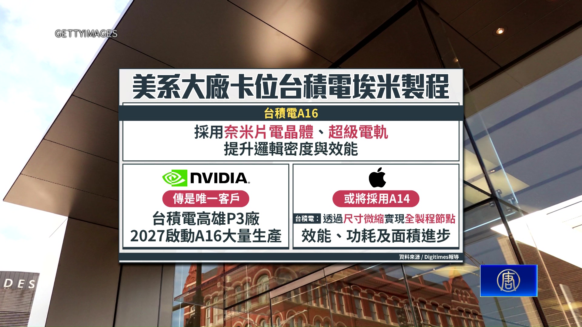 【新唐人亞太台 2025 年 12 月 03 日訊】台積電邁入埃米製程,外傳輝達將成為台積電下一世代,A16(1.6奈米)製程的唯一客戶;英特爾技術也大有斬獲,良率快速爬升,市場傳出,已取得蘋果入門M系列晶片訂單。