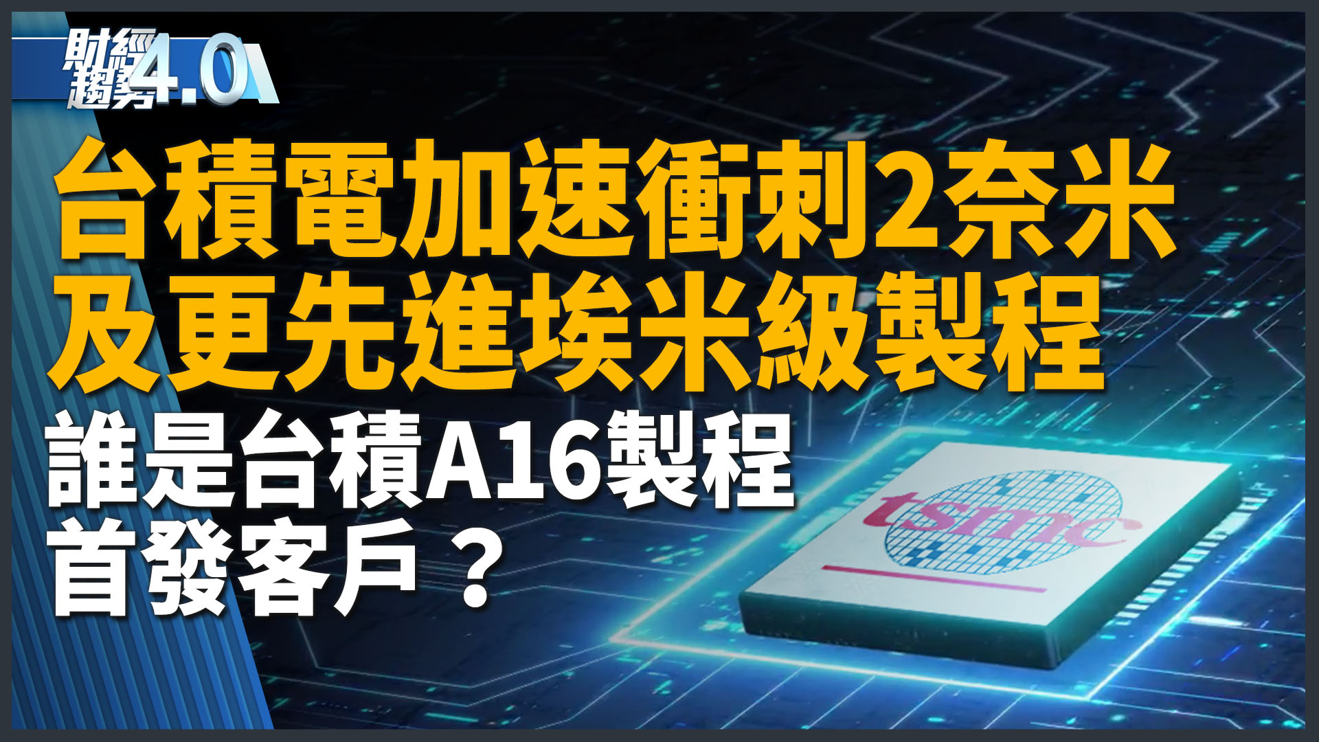 財經趨勢4.0|台積電加速衝刺2奈米及更先進埃米級製程!誰是台積A16製程首發客戶?