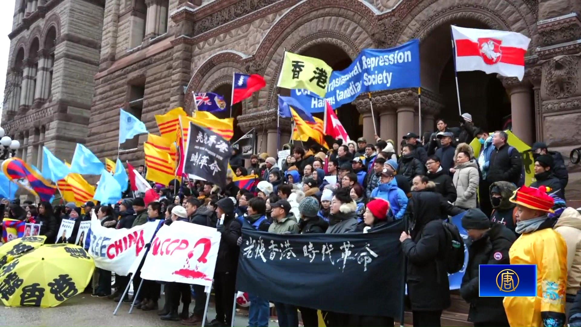 在加拿大多倫多,多個民間團體齊聚市政廳前,抗議中共對人權的持續迫害,呼籲國際社會正視中共威脅。