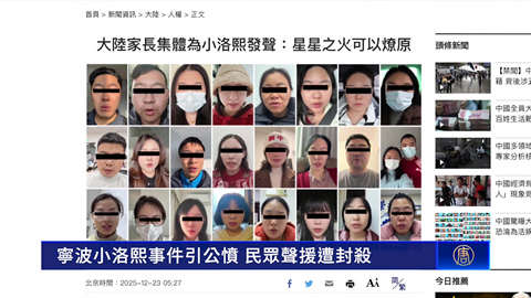 【新唐人亞太台 2025 年 12 月 24 日訊】浙江省一名5個月大的女嬰小洛熙,11月在寧波市婦女兒童醫院手術後死亡,屍檢報告揭示,醫生造假病歷,害死一條健康的小生命,引起公憤,許多家長紛紛站出來聲援,但遭到中共當局封殺。近期,大陸幼兒在醫院因為各種原因死亡的悲劇頻繁出現,一位母親控訴:在看不到的角落,可能有無數個小洛熙。