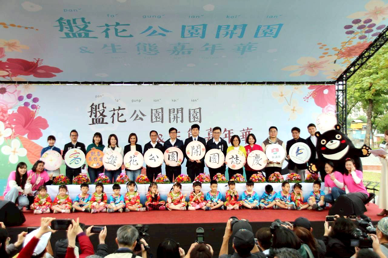 慶祝盤花公園開園的一系列生態嘉年華活動,包括:親子寫生、盤花工作坊、生態導覽、竹砲體驗、擲筊比賽、茶席品茗、市集、青年創作歌手精彩表演、客家八音及客語闖關拿好禮,吸引民眾熱情參與,在導覽過程中駐足聆聽公園設計故事,也有人在茶會中品茗聊天,感受客家文化的溫潤節奏。